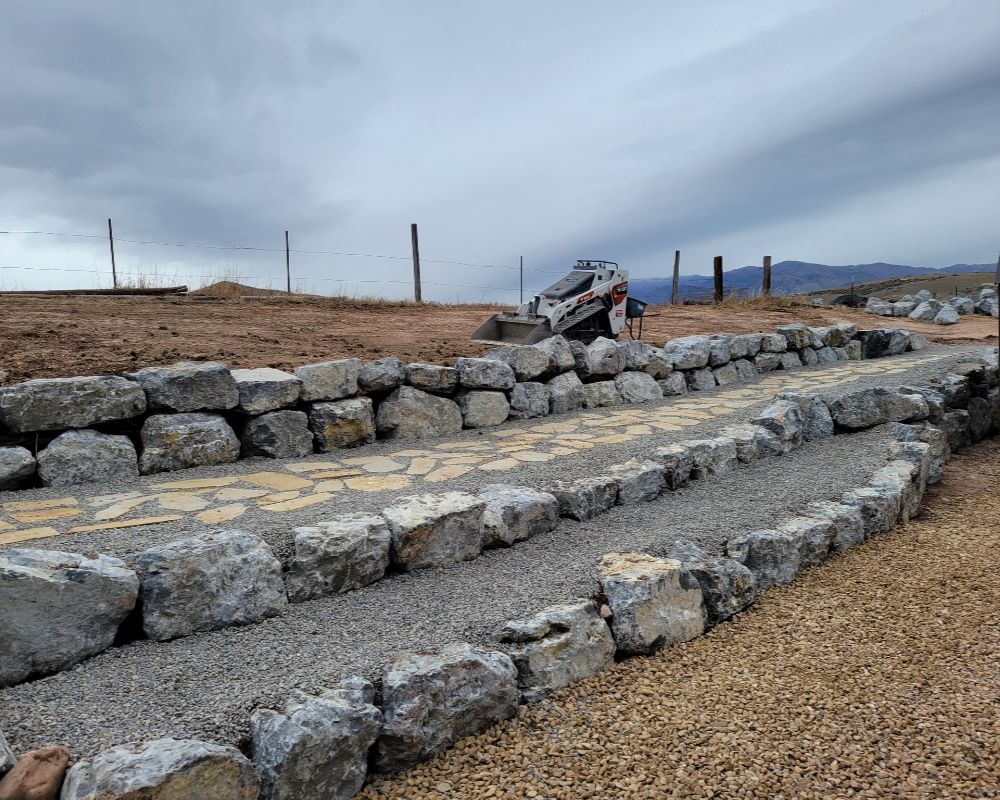 - Boulder retaining walls that provide natural structural support and erosion control